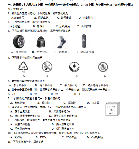 | 《辽宁省葫芦岛市2019年中考一模化学试卷(word版)》 |