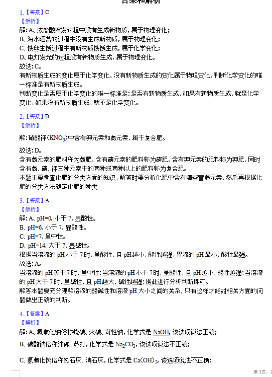 2019江苏淮安洪泽黄集中学中考一模题答案(图片版) 2019-04-04 21:22:53中考网编辑 点击免费领取中考核心考点资料! 中考网为初中学生精心整理了2019中考化学模拟题,希望能对各位学生及家长有所帮助。下面是《2019中考化学模拟题训练》,供大家参考