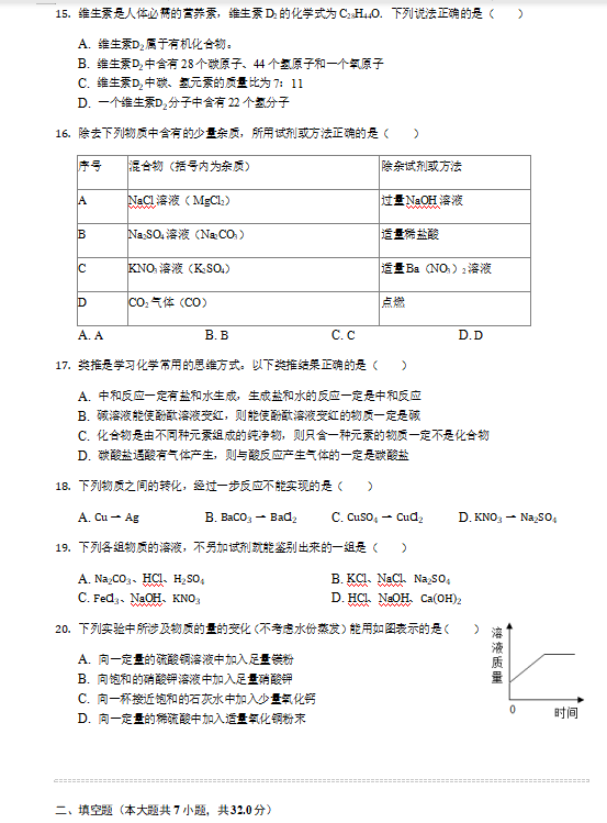 2019年广西钦州市中考化学模拟试卷(图片版)(3)