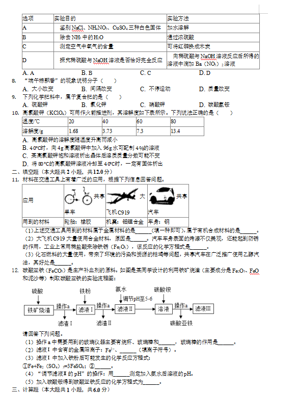 2019安徽省弋江区初中化学中考模拟题一(图片版)(2)