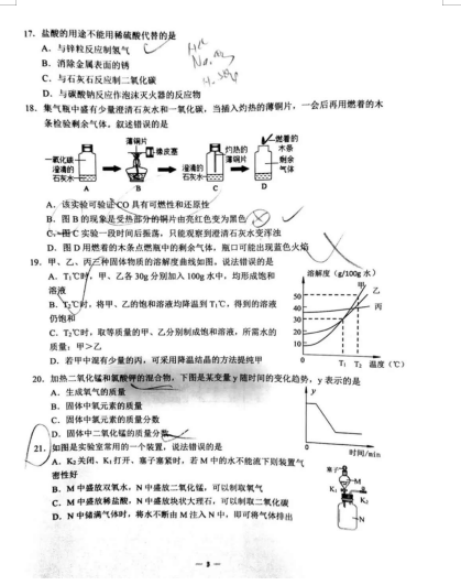 2019上海市杨浦区九化学二模试卷(图片版)(3)