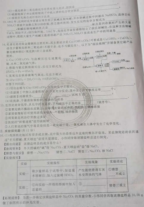 山东济宁嘉祥2019中考模拟化学试卷一(图片版)(3)
