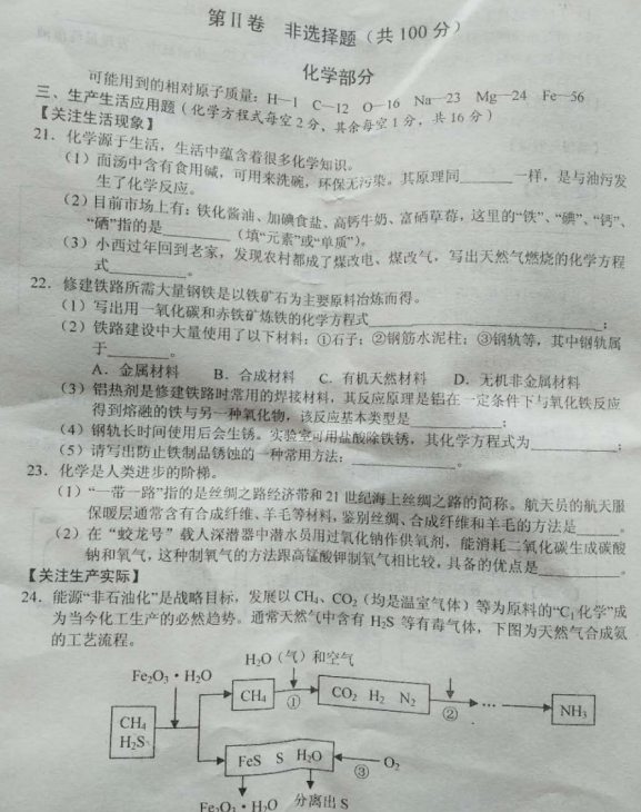 2019山西中考考前适应与模拟训练化学试卷(图片版)(3)
