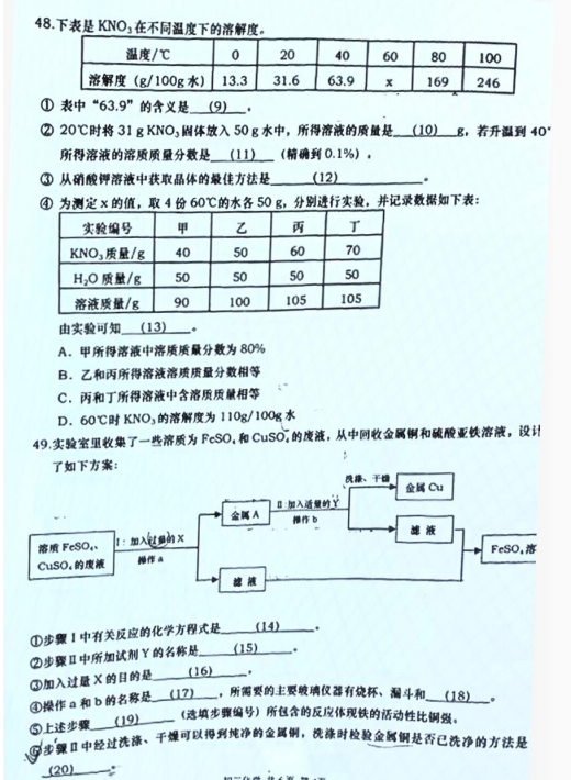 上海金山2019九年级二模化学试卷(图片版)(4)