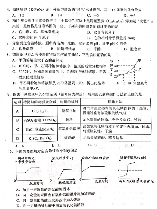 2019山西中考化学考前适应与模拟训练题(图片版)(2)