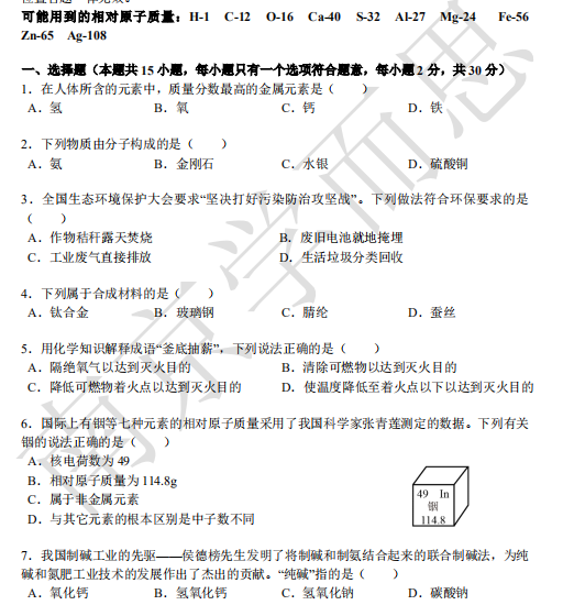 | 《2019南京鼓楼中考化学一模试题(word版)》 |
