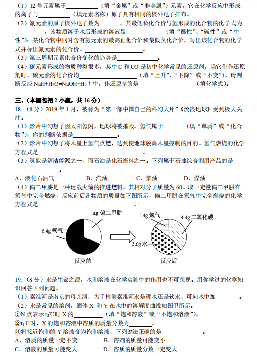 2019南京玄武区中考化学一模试题(图片版)(4)