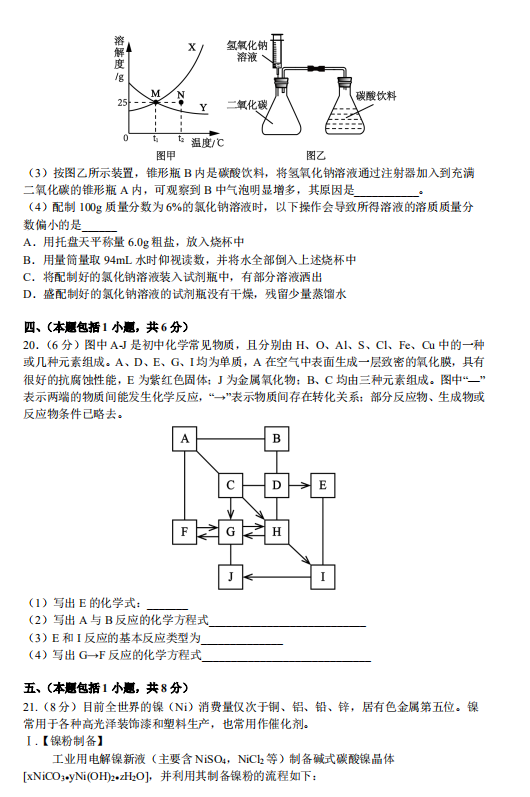 2019南京玄武区中考化学一模试题(图片版)(5)