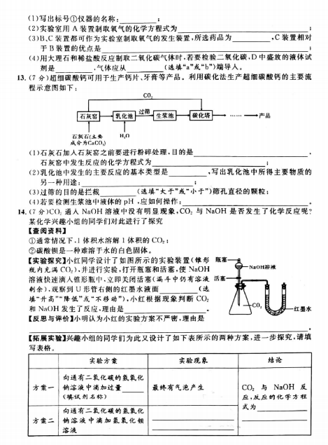 安徽阜阳市颍上县2019届模考化学题(图片版)(3)