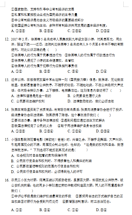 人教版下政治二单元理解权利义务基础卷(图片版)(3)