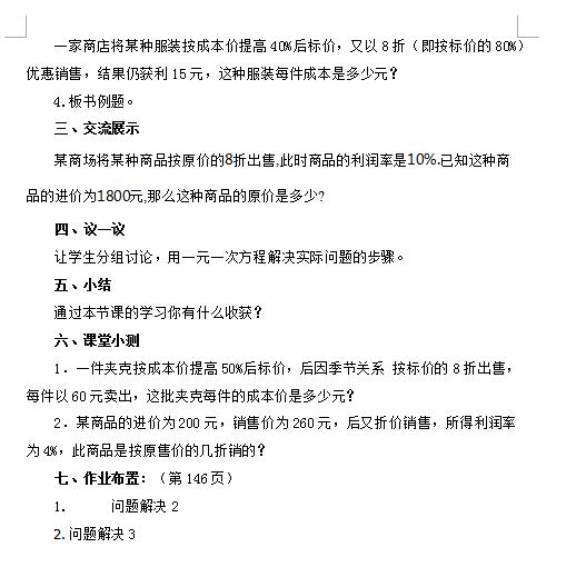 人教版七年级数学上册打折销售 教学设计(图片版)(2)