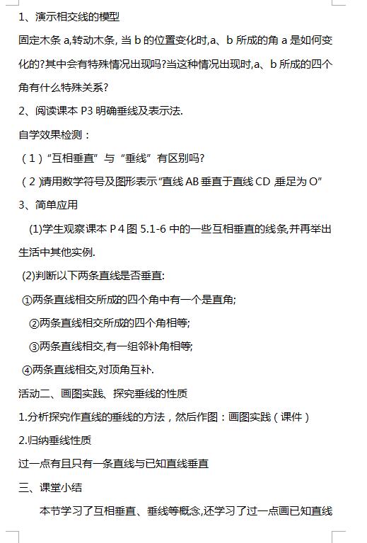 人教版数学七下5.1.2 垂线教案(图片版)(2)