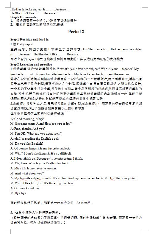 人教版新目标英语七上Unit9 Myfavorite subject is science教案(图片版)(2)