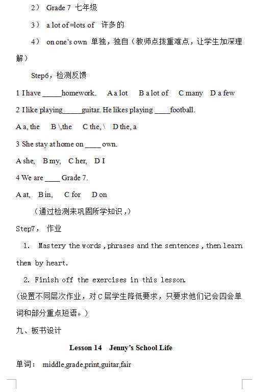 冀教版七下英语14 Jenny's School Life 教案(图片版)(5)