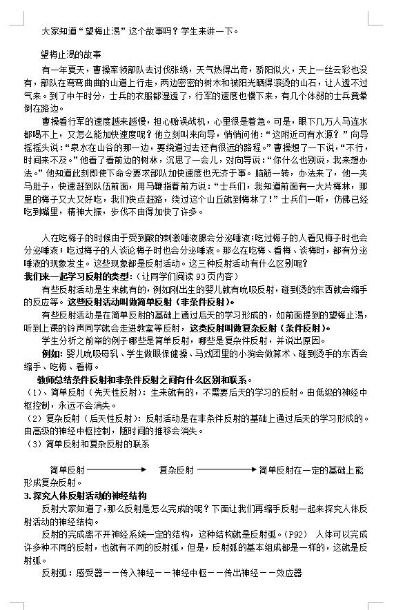 人教版七下生物 4.6.3 神经调节的基本方式教案(图片版)(2)