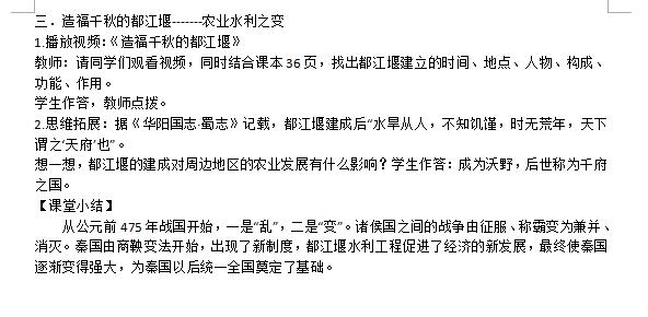 部编版历史七上第7课战国时期的社会变化教案(图片版)(3)