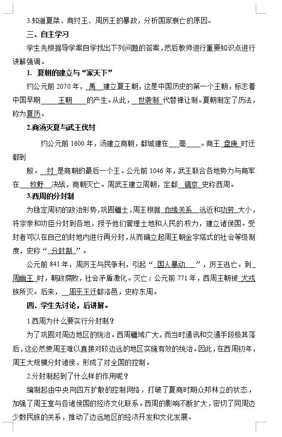 部编七上历史第4课夏商周的更替教案(图片版)(2)