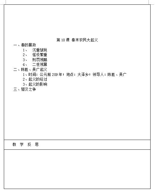 人教新版历史七上第10课秦末农民大起义教案(图片版)(3)
