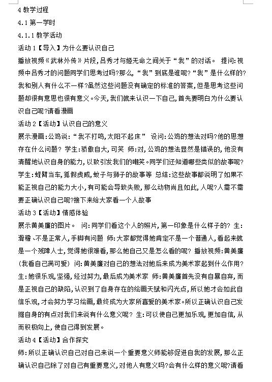 人教版七上道德与法治3.1 认识自己教案(图片版)(2)