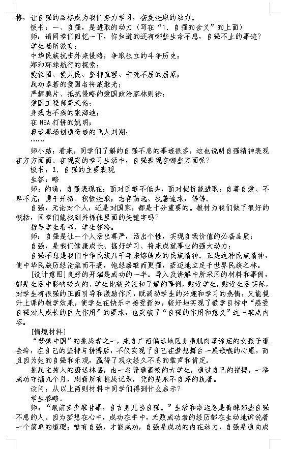 人教版七下思想品德第四课第一框人生自强少年始教案(图片版)(2)