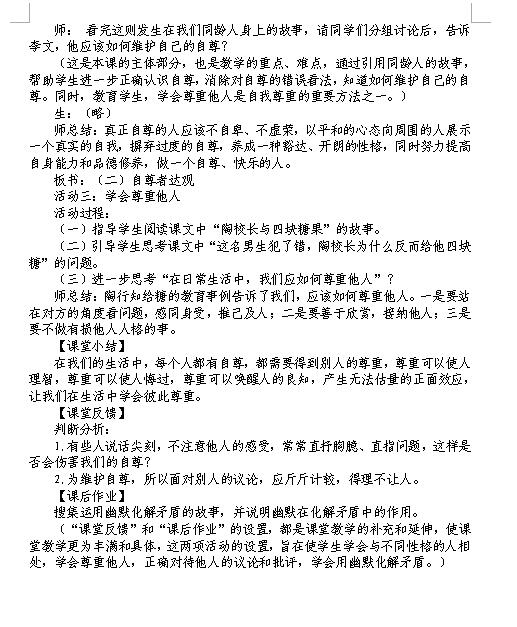 人教版七下思想品德第一课第三框彼此尊重才能赢得尊重教案(图片版)(2)