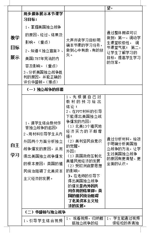 人教部编版九上历史第18课美国的独立教案(图片版)(2)