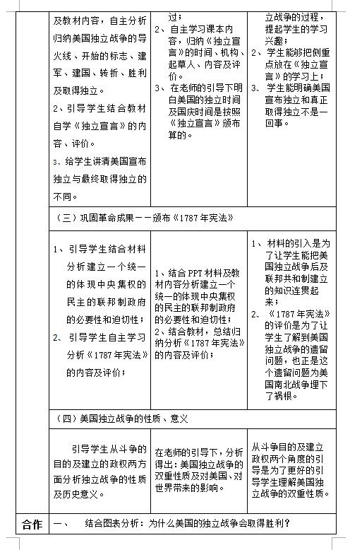 人教部编版九上历史第18课美国的独立教案(图片版)(3)