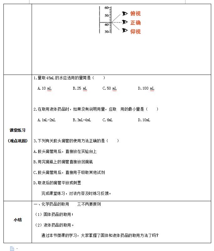 人教版九上化学1.3.1走进化学实验室教案(图片版)(3)