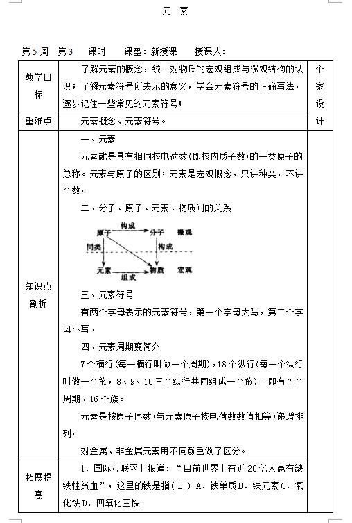 人教版九上化学3.3元素教案(图片版)