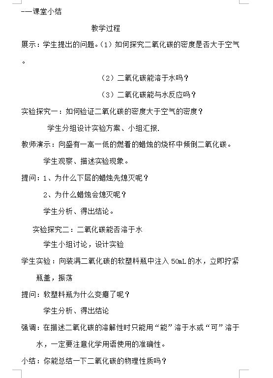 人教版化学九上6.3二氧化碳和一氧化碳第一课时教案(图片版)(2)
