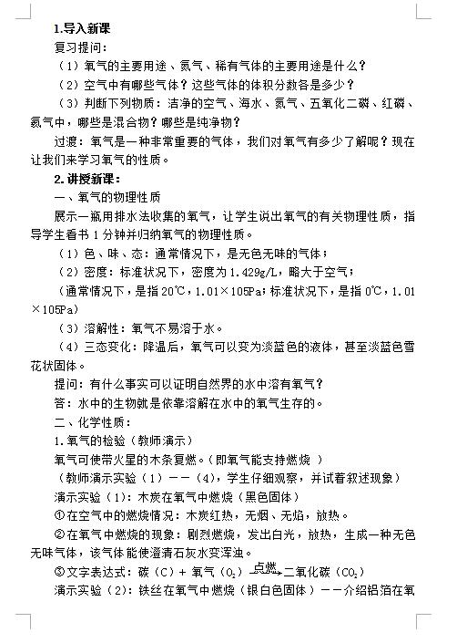 人教版九上化学2.2氧气第一课时教案(图片版)(2)
