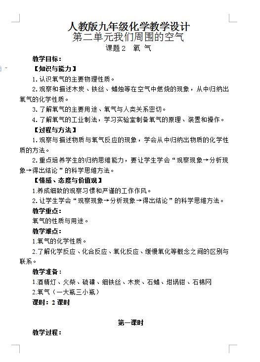 人教版九上化学2.2氧气第一课时教案(下载版) 2022-08-08 11:29:45佚名 点击免费领取中考核心考点资料! 人教版九上化学2.2氧气第一课时教案(下载版) 请下载附件: 《人教版九上化学2.2氧气第一课时教案(下载版)》 (本地下载在线阅读)