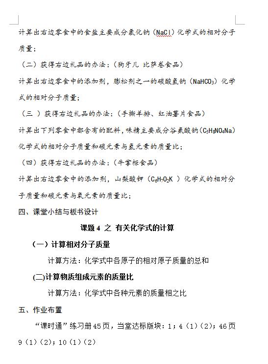 人教版九上化学4.4 化学式与化合价有关化学式的计算教案(图片版)(3)
