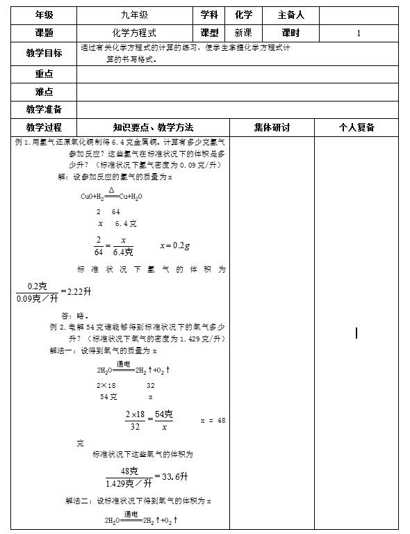 粤教版初中化学九上4.4化学方程式教案(下载版) 2022-08-08 12:39:19佚名 点击免费领取中考核心考点资料! 粤教版初中化学九上4.4化学方程式教案(下载版) 请下载附件: 《粤教版初中化学九上4.4化学方程式教案(下载版)》 (本地下载在线阅读)