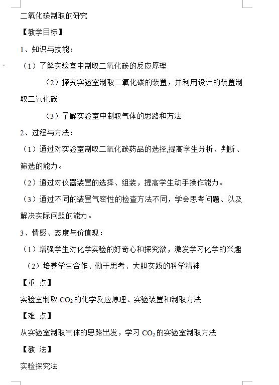 粤教版初中化学九上5.3二氧化碳的性质和制法教案(图片版)
