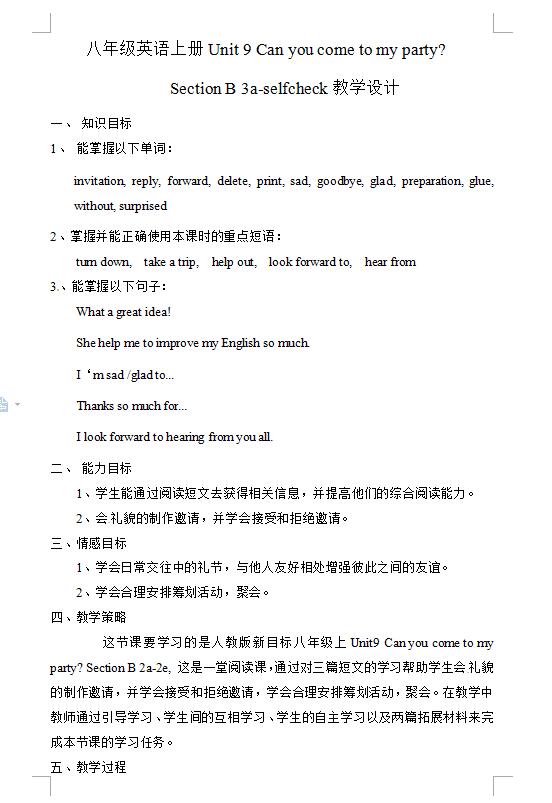 | 《人教版八上Unit 9 Section B 3a-selfcheck 教案(下载版)》 |