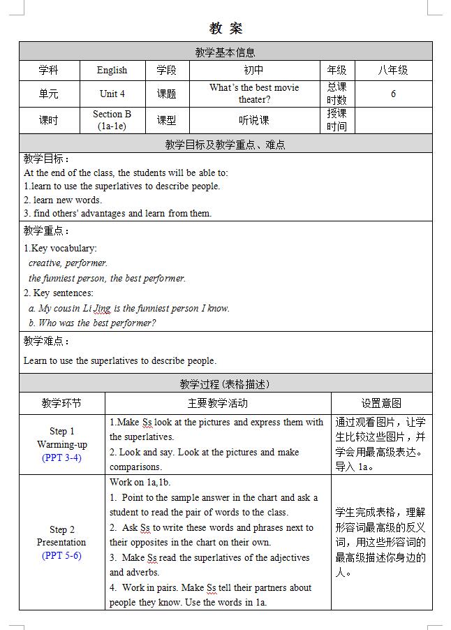 | 《人教版Unit 4 Section B 1a-1e 教案(下载版)》 |