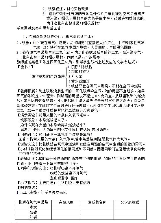沪教版初中化学九上2.1性质活泼的氧气教案(图片版)(3)