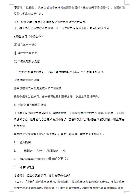 沪教版初中化学九上第四章化学反应的表示方法教案(图片版)(3)