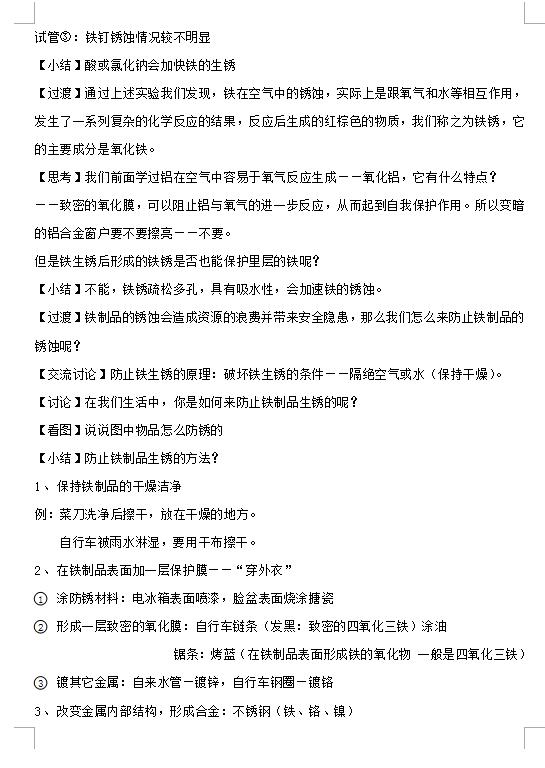 沪教版初中化学九上5.3金属防护和回收教案(图片版)(3)