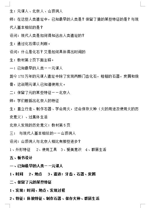 统编版七上历史第1课中国境内早期人类的代表——北京人教学设计(图片版)(2)