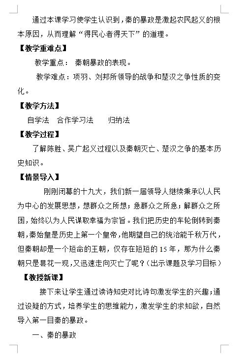 统编版七上历史第10课秦末农民大起义教学设计(图片版)(2)