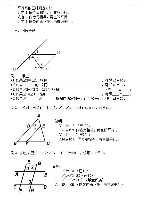 沪科版七下数学10.2.2平行线的判定方法(二、三) 教案(图片版)(2)