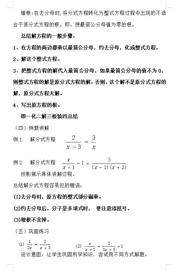 沪科版数学七下9.3分式方程(一)教案(图片版)(3)