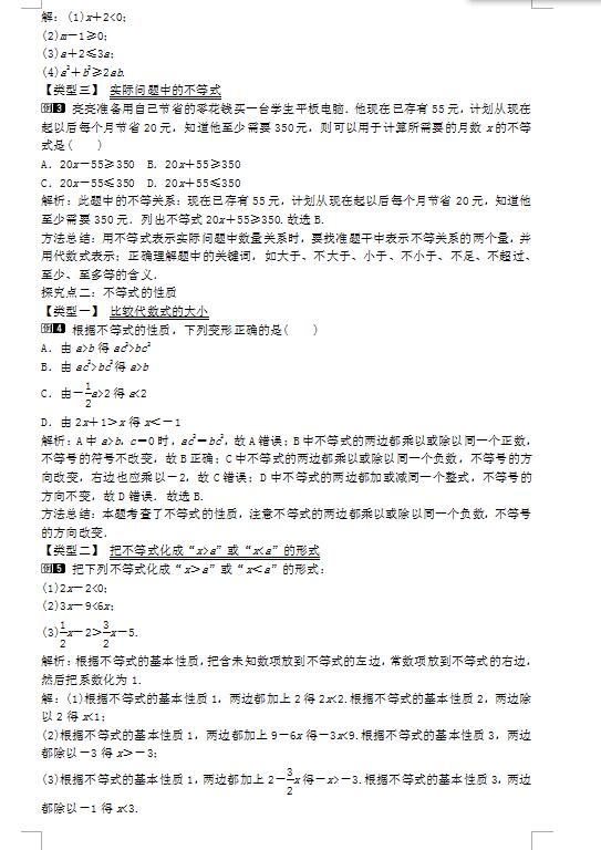沪科版七下数学7.1不等式及其基本性质教案(图片版)(2)