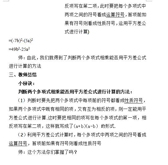 冀教版数学七下8.5乘法公式教案(图片版)(3)