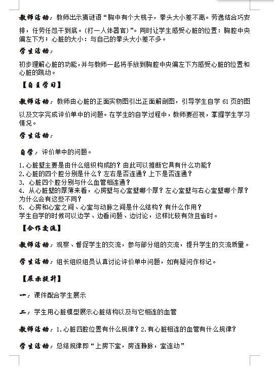 北京版七下生物5.2.4心脏的结构教案(图片版)(2)