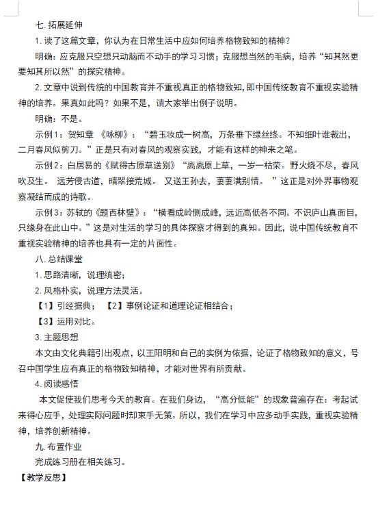 关于【部编版八下语文《应有格物致知精神》教案(图片版)(5)】及中考、查分、择校等最新干货资讯,均在家长帮App,还有配套习题及老师免费解答问题,赶快戳我下载 >>>【家长帮App】<<< 相关推荐 2020年中考必备APP「家长帮」免费下载2020年全国中考考试时间汇总2020年全国中考报名时间汇总2020年全国中考大事记2020年中考考前冲刺各科备考全攻略历年全国各省市中考真题及答案历年中考满分作文历年中考录取分数线汇总2020年中考资讯提前看2020年中考政策解读2020年中考政策解读 点击查看更多