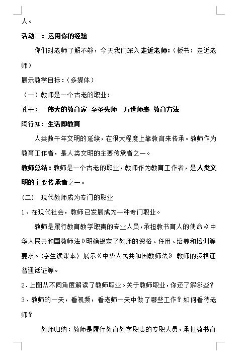 关于【部编版七上道德与法治6.1走近老师教案(图片版)(2)】及中考、查分、择校等最新干货资讯,均在家长帮App,还有配套习题及老师免费解答问题,赶快戳我下载 >>>【家长帮App】<<< 相关推荐 2020年中考必备APP「家长帮」免费下载2020年全国中考考试时间汇总2020年全国中考报名时间汇总2020年全国中考大事记2020年中考考前冲刺各科备考全攻略历年全国各省市中考真题及答案历年中考满分作文历年中考录取分数线汇总2020年中考资讯提前看2020年中考政策解读2020年中考政策解读 点击查看更多