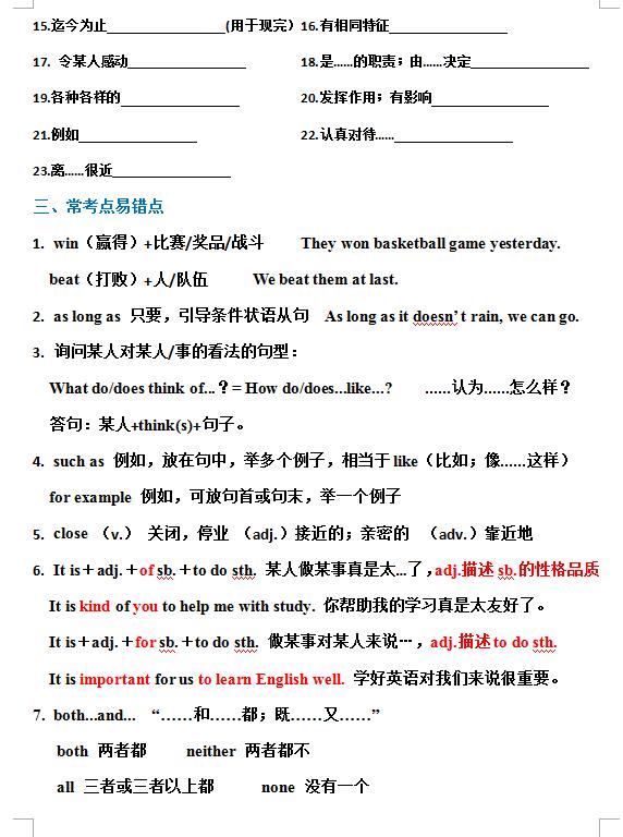 2024年人教版八上英语Units 3-4教材梳理(图片版)(2)